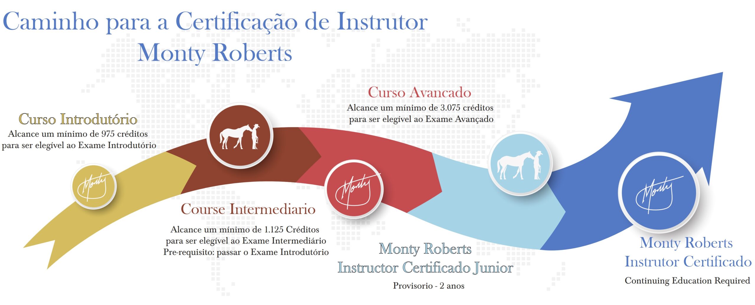 Os cursos intermediário e avancado sao realizados somente na Flagst up Farms (fazenda do Monty Roberts na California) ou no MRLCE (centro de treinamento Monty Roberts na Alemanha)
